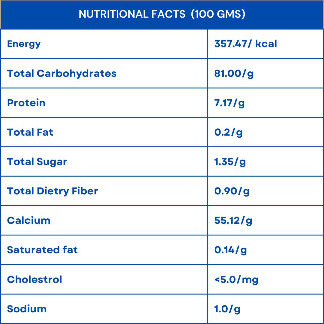 Refined White Flour, Whole Wheat Flour, Rice Flour, Tapioca Flour, Iodised salt, Corn Flour, Corn Starch, Sugar, Refined Palm Oil & Turmeric