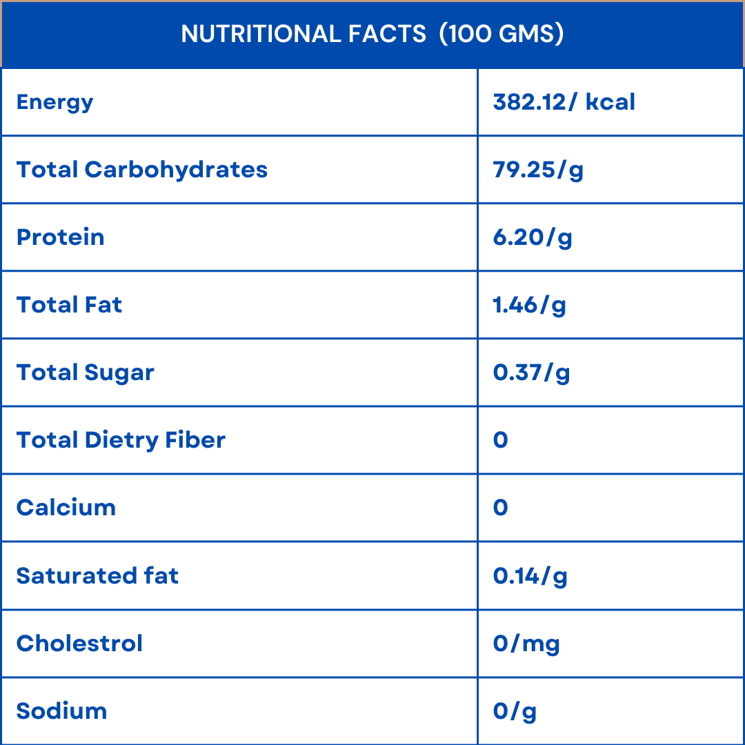 Rice Flakes, Rice Flour, Tapioca Starch, Papad Khar, Refined Palm Oil & Iodised Salt