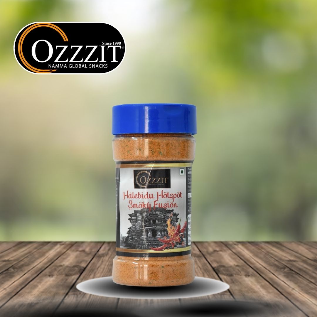 "Halebidu Hotspot Smoky Fusion" creative ready-to-serve masala from Nathani Enterprises. "Smoky Fusion," it suggests a blend of spices with a smoky flavor profile, possibly reminiscent of grilled or barbecued dishes. Ready-to-serve masalas like this can add depth and complexity to various dishes, offering a convenient way to infuse them with bold and smoky flavors without the need for lengthy preparation. It could be used to season fryums, fried chips, meats, vegetables, or even vegetarian dishes like pulses or paneer, providing an instant burst of flavor reminiscent of a smoky barbecue.